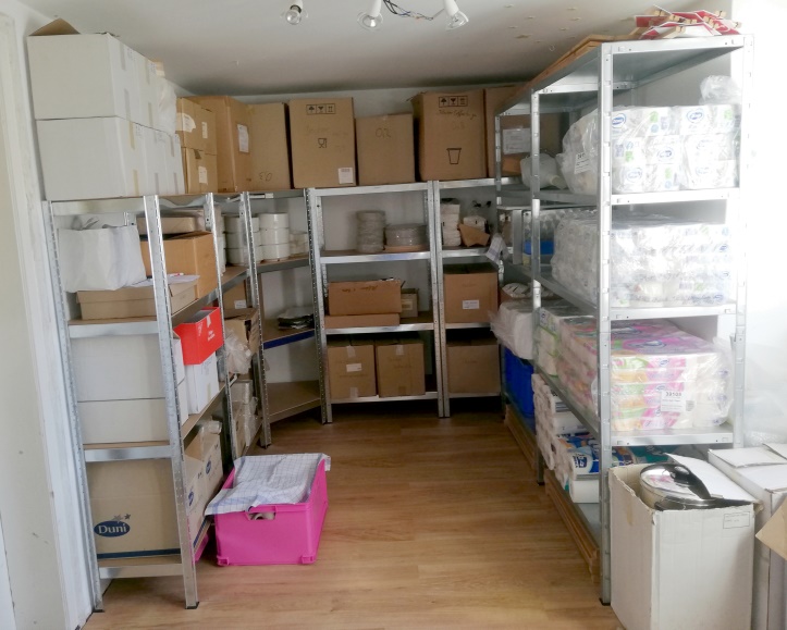 Ein Zimmer wurde als Lager für Verbrauchsmaterial für unseren Klostermarkt ausgebaut.
