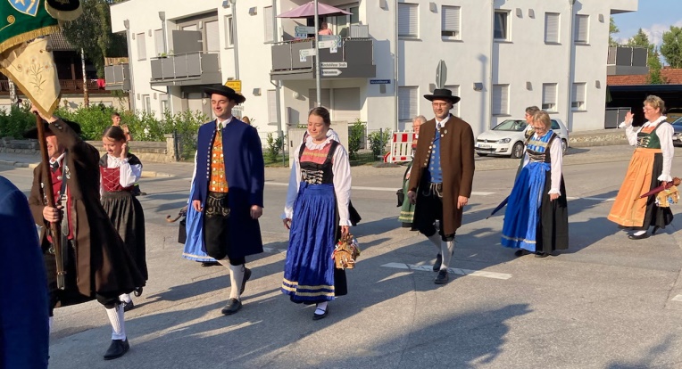 beim Gedenken des Jubelvereins an die verstorbenen Mitlieder und dem Ausmarsch zum Festzelt.